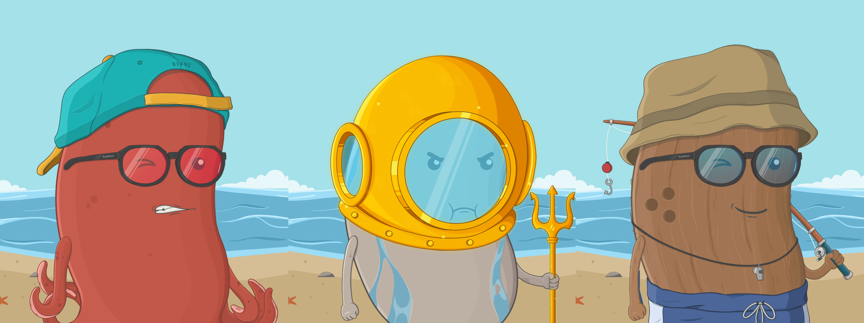 Like previous collections, the Basin BeaNFT design retains that iconic BeaNFT silhouette with refreshed attributes. Your BeaNFTs are preparing for a day by the lake, on the beach or scuba diving in the ocean. Prepare to go swimming, surfing, snorkeling and diving with these new PFPs, reflecting their ambition to have deep liquidity in the BEAN:ETH Well.