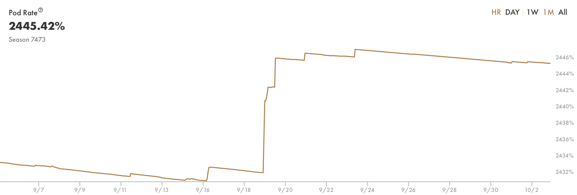 The Pod Rate (The ratio of outstanding Pods per Bean, displayed as a percentage) has increased by 0.5% to 2445%.