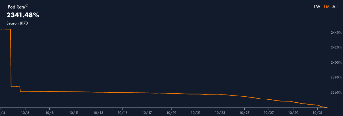 The Pod Rate (The ratio of outstanding Pods per Bean, displayed as a percentage) decreased by 19.3% to 2341%.