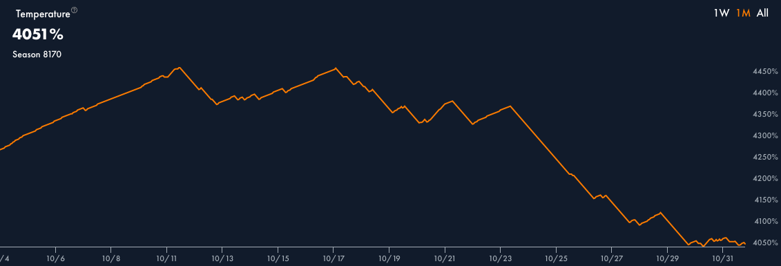 The Temperature decreased by 382% to 4051%