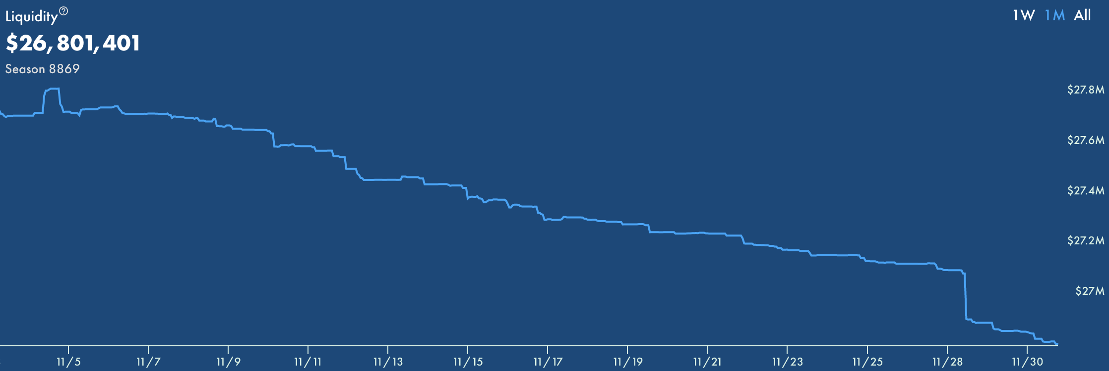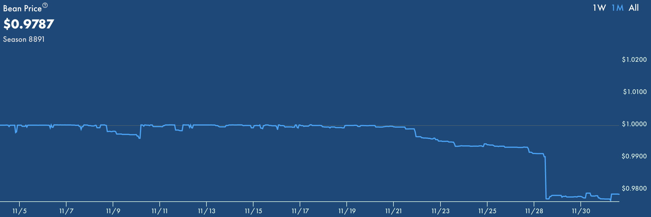 The price of Bean crossed its peg 10 times and protocol liquidity decreased 1.8% to ~$26.8M.