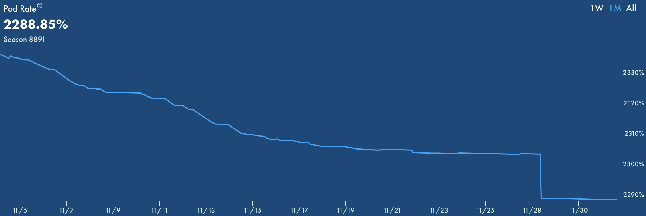 The Pod Rate (outstanding Pods per Bean) decreased 18.6 points to 2289%.