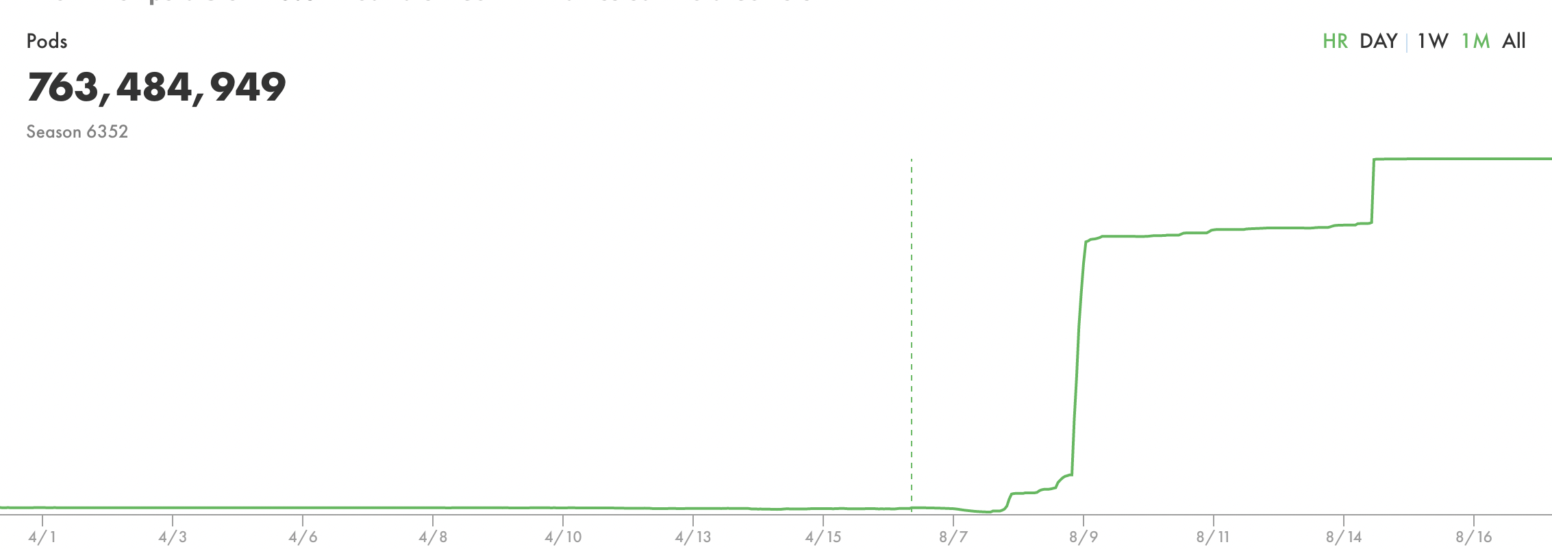 Beanstalk Unpaused with the price of Bean at $1.07 and a ramped up deltaB minting schedule of 1% per Season for the first 100 Seasons. The ramp up period, along with demand for Beans, led the price of Bean to peak at $1.16 and then settle down back to $1.00. Beanstalk Unpaused with ~$28M in liquidity. Shortly after Unpause, Beanstalk attracted ~$10M of liquidity for a total of ~$38M, followed by an exit of ~$7.7M as of 8/16.