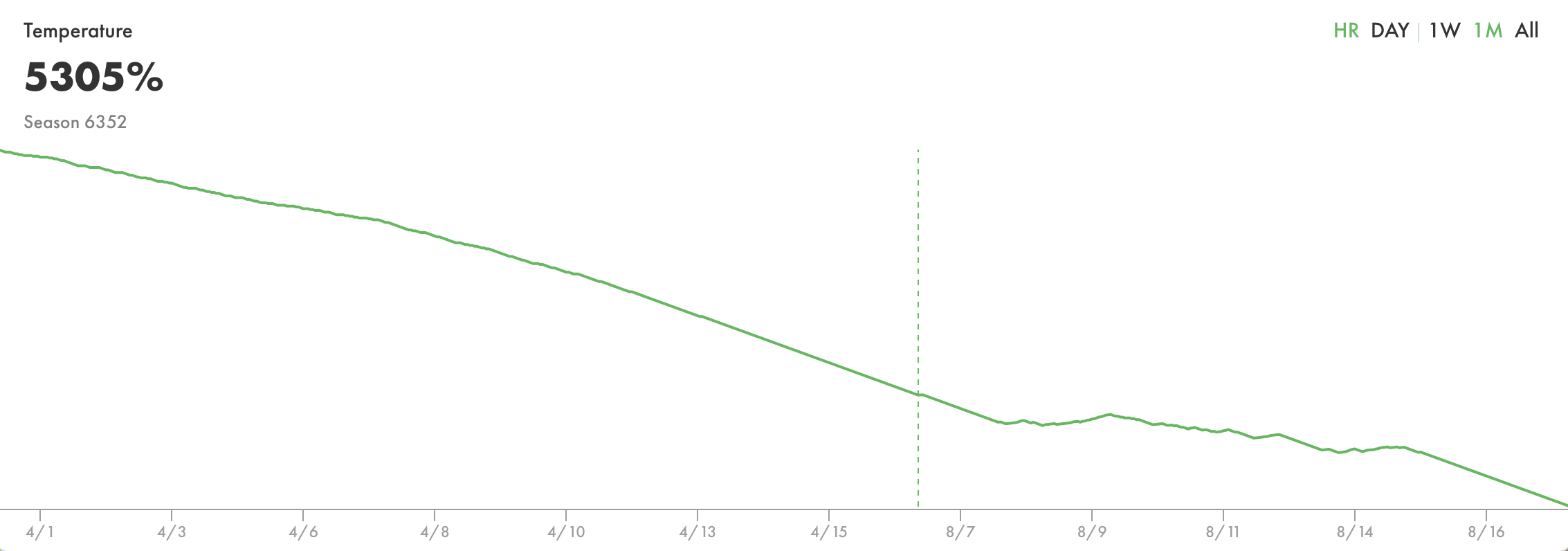 The strong demand for Soil is reflected in the Temperature which has continued on a downward trend since Unpause.