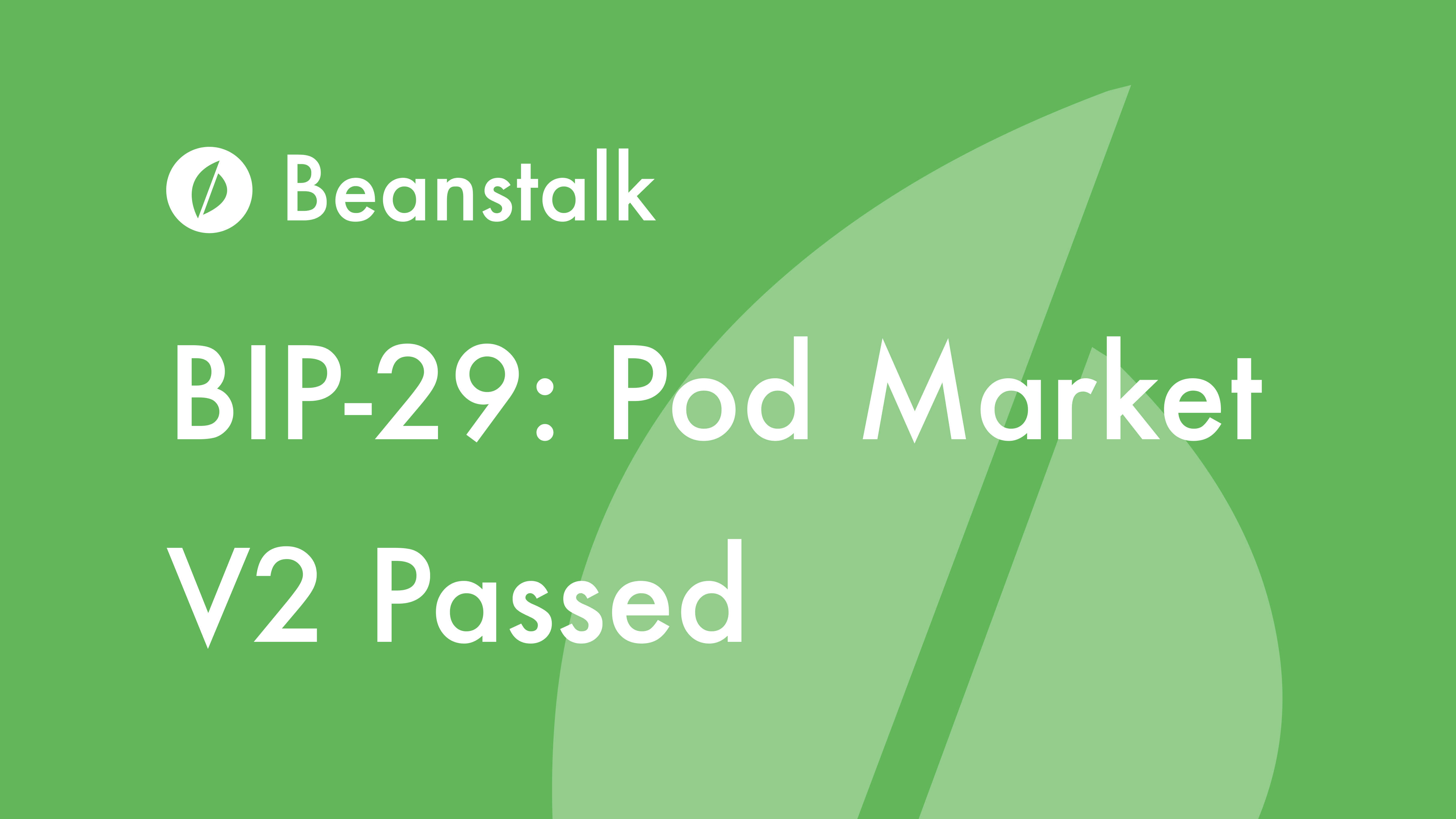 Beanstalk Farms is pleased to announce that BIP-29: Pod Market Price Functions has passed by a vote of the DAO.